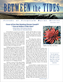 In this issue of Between the Tides: Our September issue, the S month, includes Scholarships, Surveys, Starfish, Summer Camp, Sanctuary Day, Seymour Marine Discovery Center visit, Snails, Sign-up for Naturalist Training and last but not least, Spectacular photos by Ranger Rob Cala.